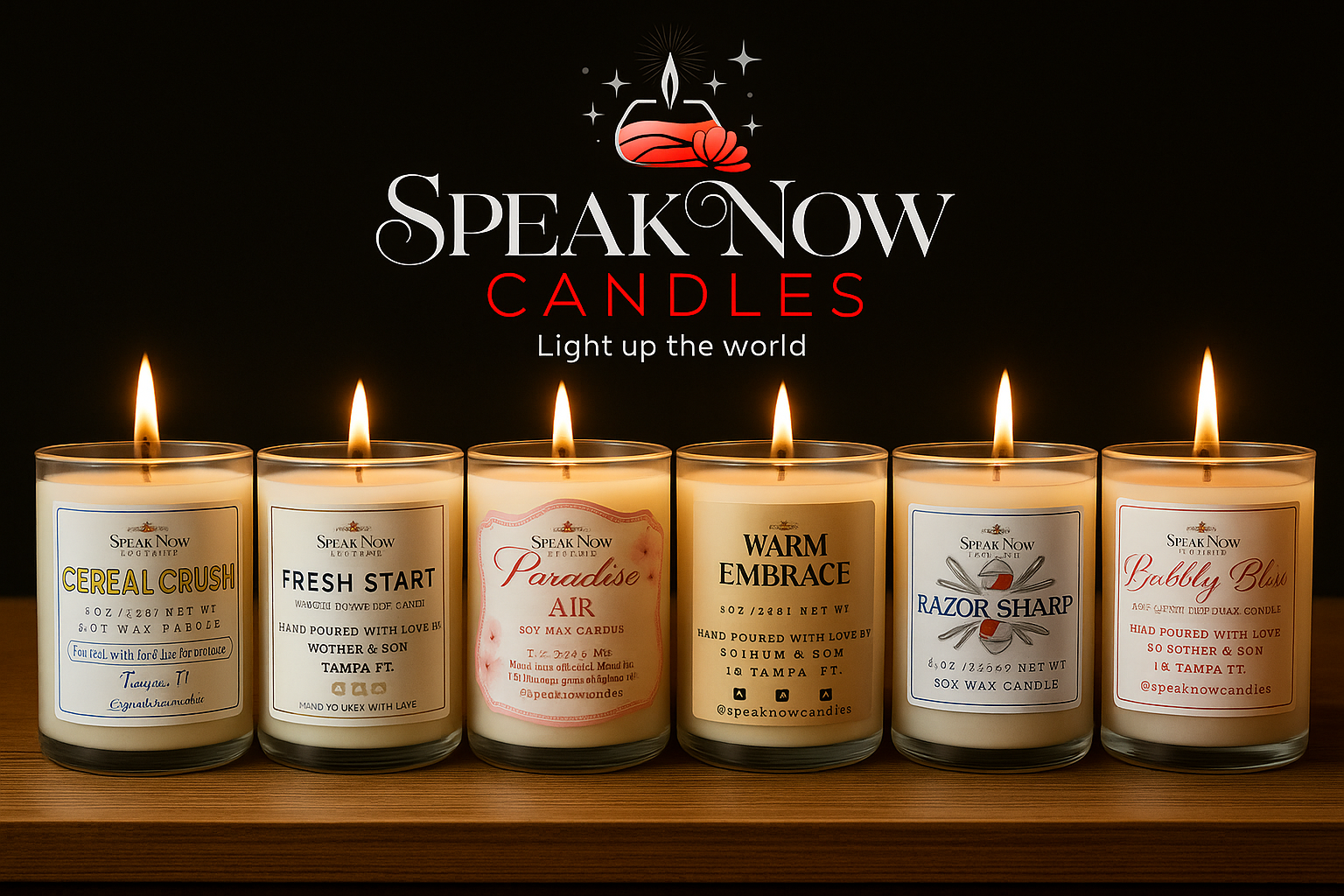 Speak Now Candles was created by mother and son as a way to share light, comfort, and hope with others. Every candle is hand-poured with love and inspired by the moments we cherish together. A portion of each purchase goes toward supporting medical trauma patients and their families through Speak Now Never Hold Your Peace nonprofit organization. Thank you for helping us spread kindness and make a difference, one candle at a time.